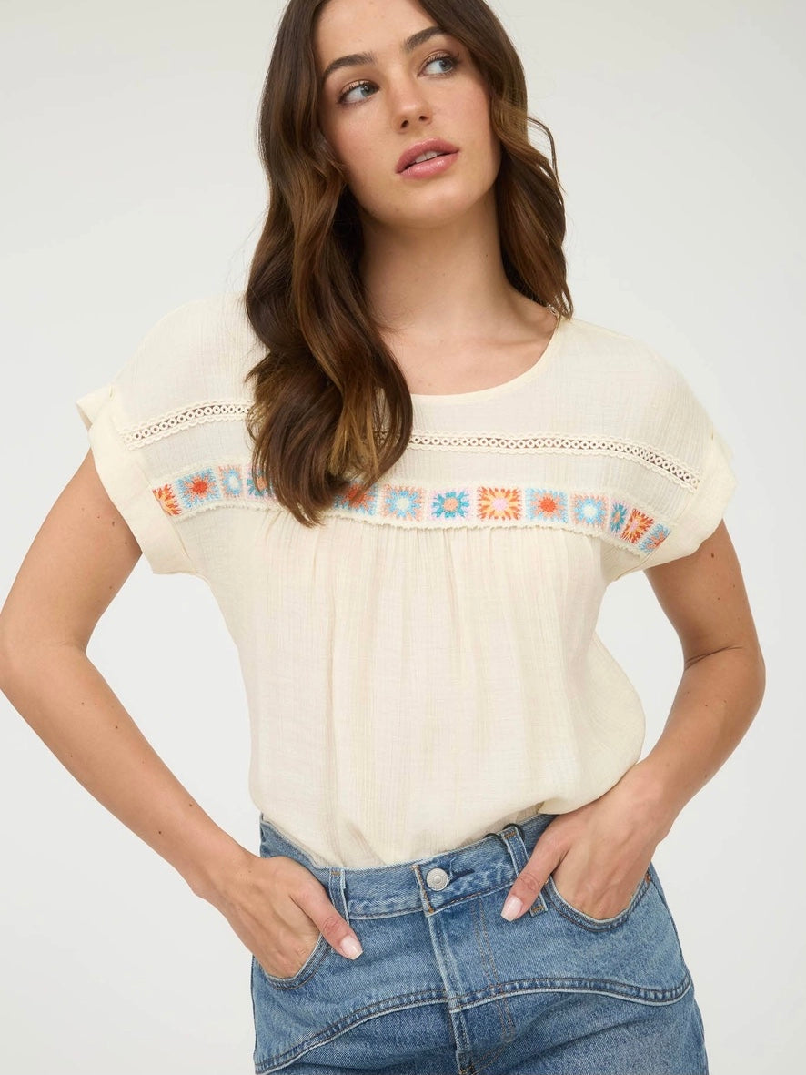 Self: 86% rayon, 14% nylon Contrast: 100% polyester