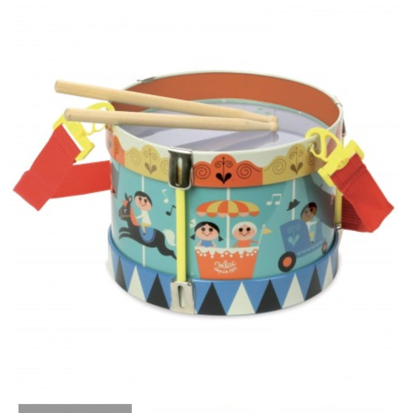 Metal drum decorated with illustrations by Swedish designer Ingela P. Arrhenius, comes with two wooden drum-sticks and a strap.